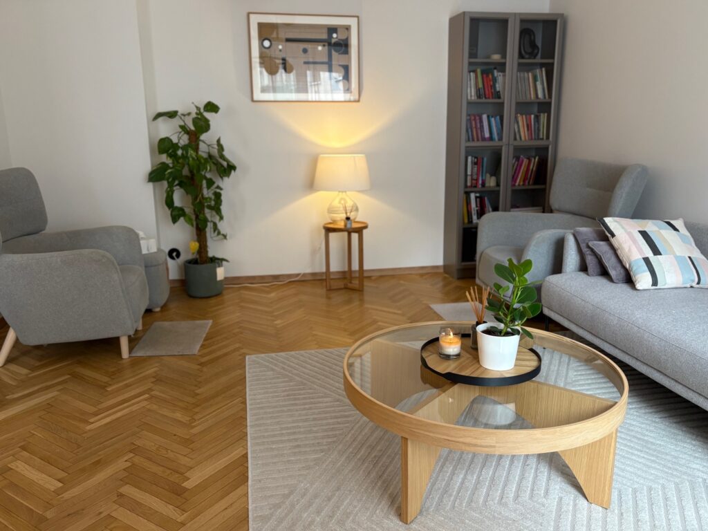 Duża przestrzeń oraz neutralny wystrój zapewniają poczucie wyciszenia, skupienia oraz bezpieczeństwa, tak istotne dla skutecznej pracy terapeutycznej.